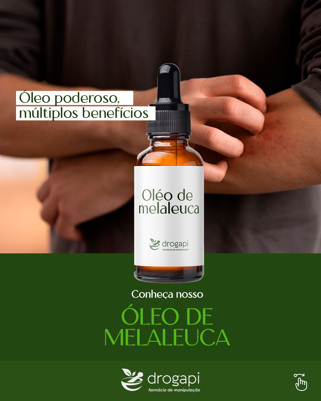 Este óleo possui diversas propriedades medicinais: antissépticas, antifúngicas, parasiticidas, germicidas, antibacterianas, anti-inflamatórias, antiviróticas, expectorante e cicatrizante, que lhe atribuem inúmeros benefícios. Confira os usos do óleo de melaleuca: Tratar fungos nas unhas, tratar micosem melhora sintomas da infecção, como a coceira e inflamação. Melhora a acne, elimina o excesso de caspa, alivia os efeitos da depilação e do pós-barba e evita a foliculite.